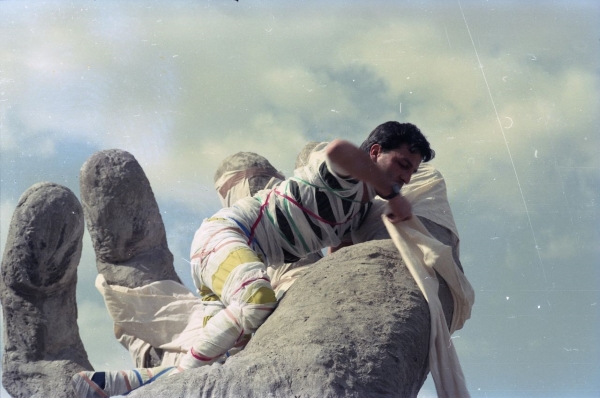 Moni, Eller Eller performansında, Abdi İpekçi Parkı, Ankara, 1990, Salt Araştırma, Moni Salim Özgilik Arşivi