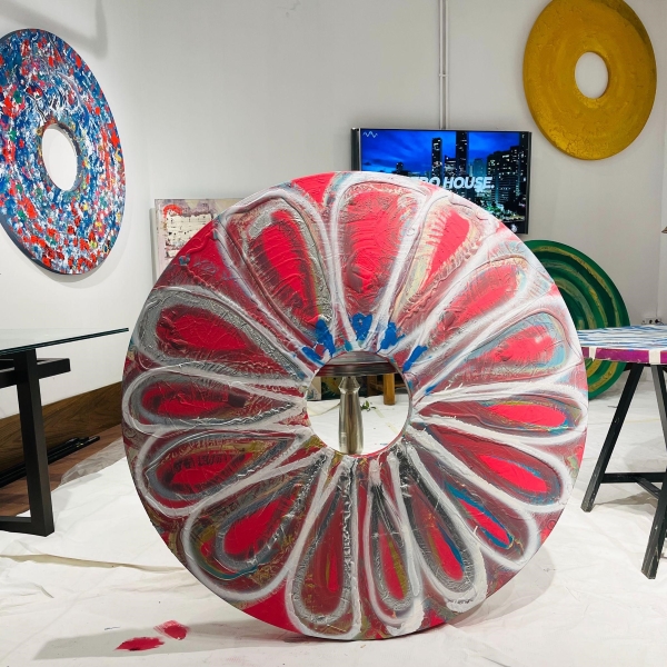 N.Y.Ç: Art of Living House enerjisi yüksek bir kolektif alan. Birçok ruhun yaratıcı frekansının birbirine karıştığı, herkesin kendi üretiminden çok daha fazlasını ortaya koyabildiği bir yer. Eserlerimi bu mekâna yerleştirirken o kolektif bilinci besleyen ve mekânın doğal ritmiyle uyumlanan bir akış yaratmak istedim. Mekânın dairesel enerjisi ile benim vortex formum arasında görünmez bir rezonans oluşuyor.