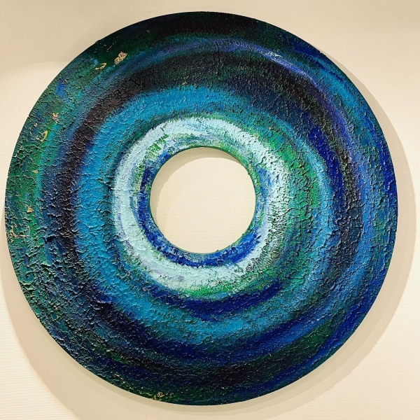 İşte tam da bu cesareti arıyorken yolum Art of Living House'a düştü geçtiğimiz hafta. Nihan Yardımcı Çetinkaya'nın stüdyosuna girdim ve kendimi Vortex serisinin ortasında buldum. Şöyle söyleyeyim. O girdaplar duvarda asılı ama hareketsiz değil. Bakıyorsunuz, dönüyor. Biraz daha bakıyorsunuz, siz de dönüyorsunuz. Derken içine çekiliveriyorsunuz. Döngülerden bahsedip dururken böyle bir sergiyle karşılaşmak tesadüf olamazdı. Her eserin kendine ait bir hikâyesi, bir frekansı, bir daveti var. Gelin size anlatayım.