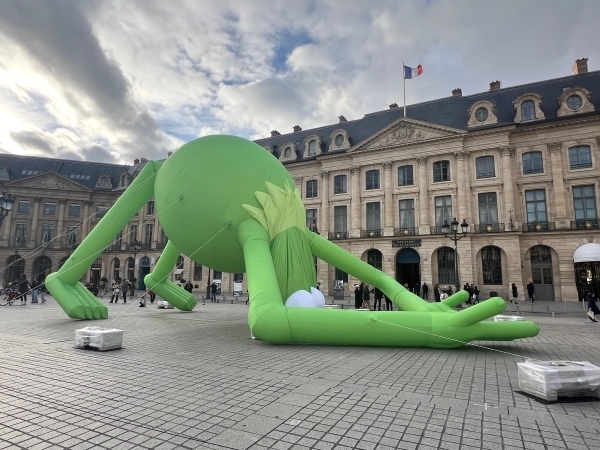 Alex Da Corte, “Kermit the Frog, Even” ile popüler kültür ikonlarını duygusal bir derinlikle yeniden yorumluyor. Place Vendome’da sergilenen bu eser, çocukluk masumiyetiyle melankoliyi ustaca bir araya getiriyor. Kermit’in yeşil figürü, sanatçının kimlik, aidiyet ve kırılganlık temaları etrafında kurduğu sahnede hem bir kahraman hem de sanatçının içsel dünyasının yansıması hâline geliyor.