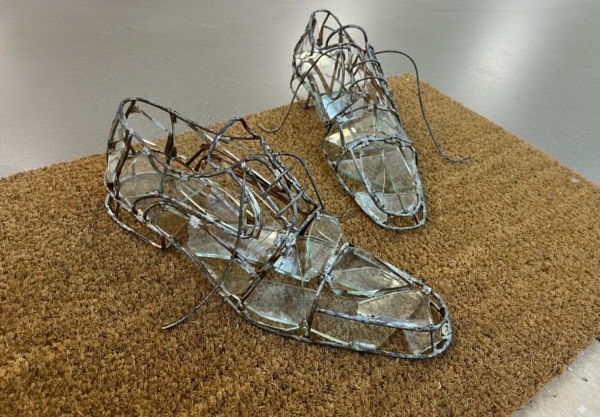 Ayşegül Karababa, Var Gibi, 2025, Cam, bakır, kapı paspası