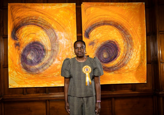 Nnena Kalu’nun Turner Prize 2025 kapsamındaki sunumundan yerleştirme görünümü, Cartwright Hall Sanat Galerisi. Fotoğraf: David Levene