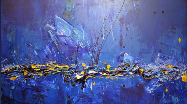 Sergideki kompozisyonlar, katmanlı yüzeyleri ve akışkan dokularıyla durağan değil, sürekli oluş hâlinde bir yapı hissi veriyor. Renk, ışığın kırılmasıyla ortaya çıkan bir sonuç gibi değil; o kırılmanın kendisi olarak işliyor. Görünen ile sezilen arasındaki ayrım netleşmek yerine bilinçli biçimde askıda tutuluyor.